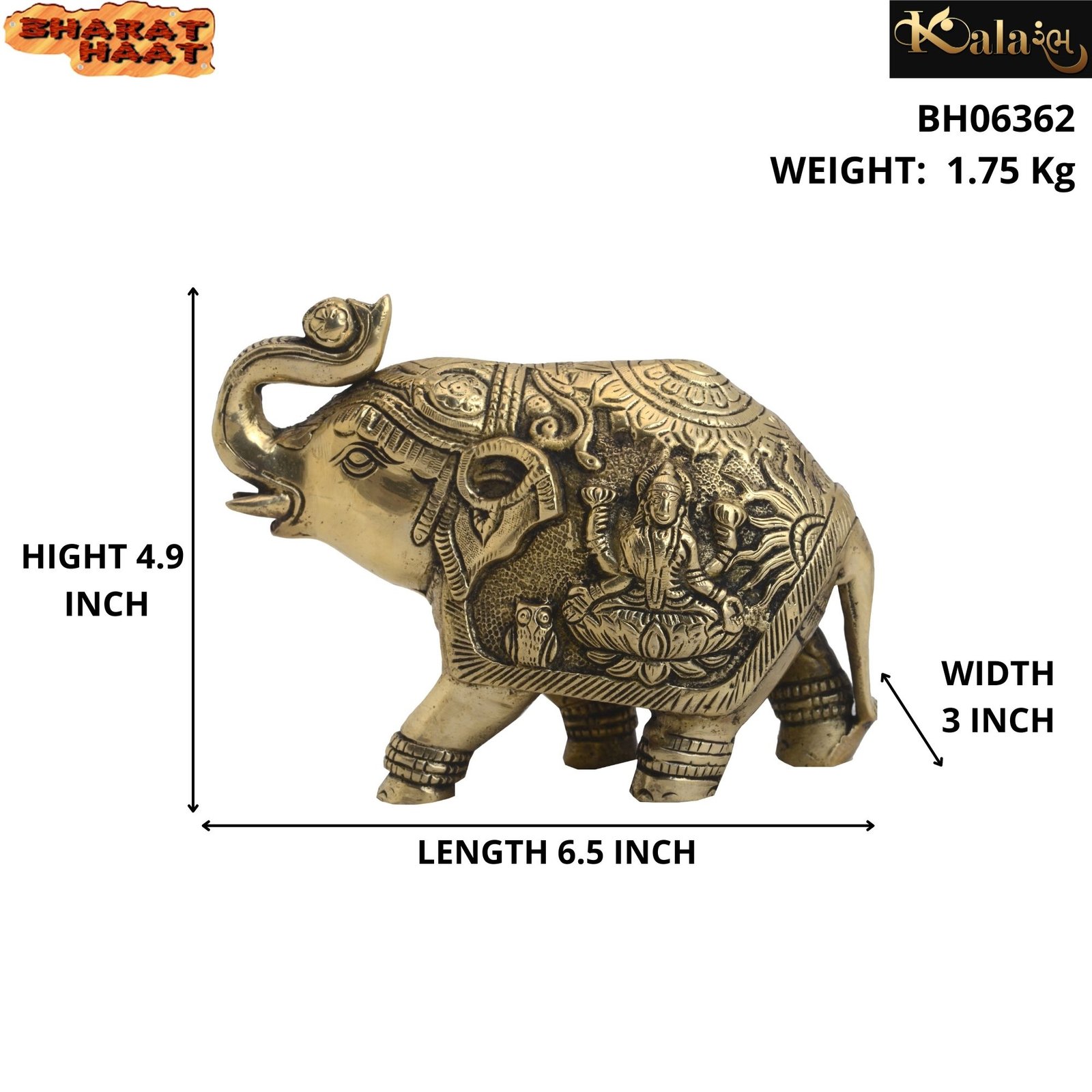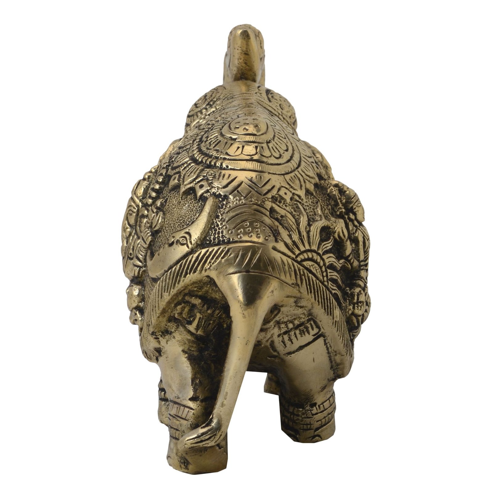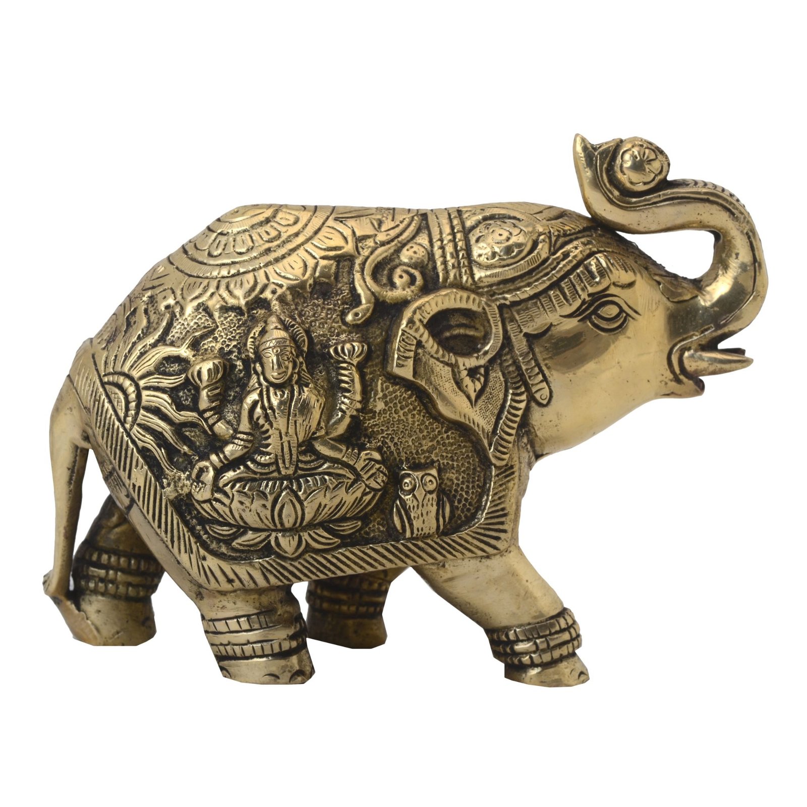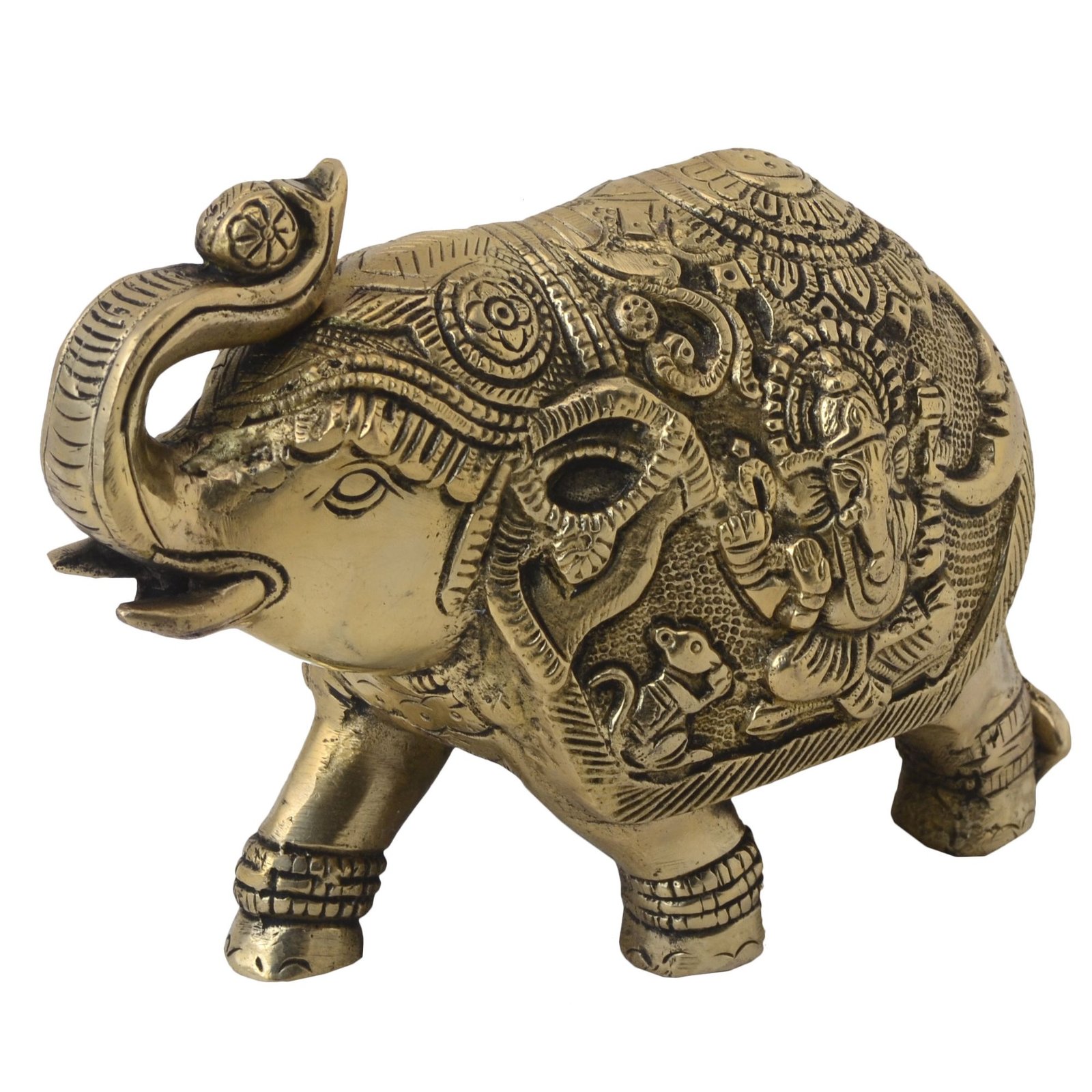 - Elegant Elephant Brass Statue With Elephant and Beautiful Design Carving Work Showpiece Sculpture Home Decor House Warming FengShui Gift HANDICRAFT ART BY BHARAT HAAT