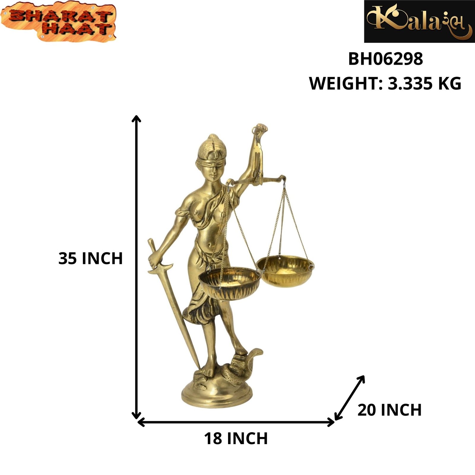 Statue Of justice Lady Brass For Collectible Handicraft Art By BHARATHAAT