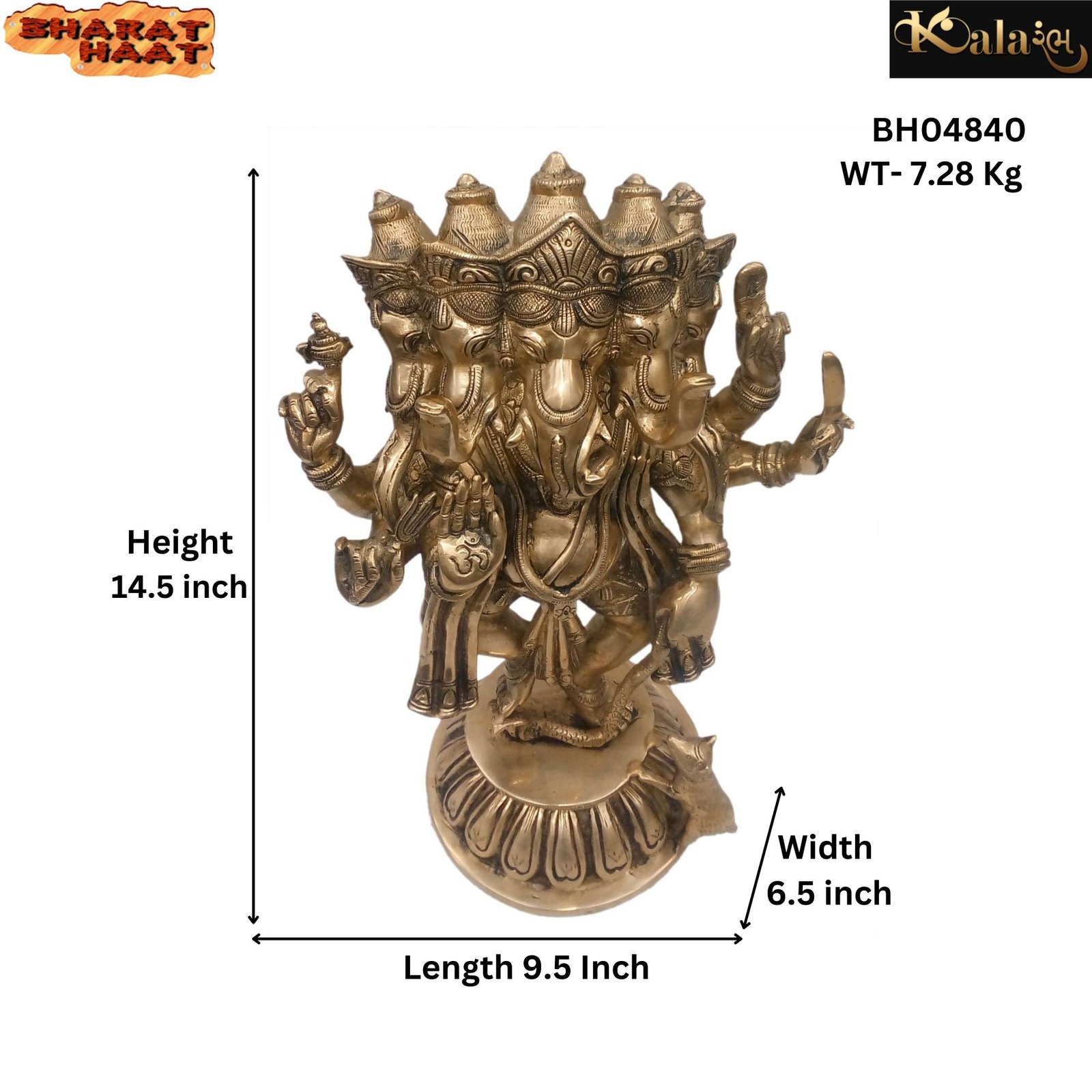 Statue Of Panchmukhi Ganesh Brass For Handicraft Art By BHARATHAAT