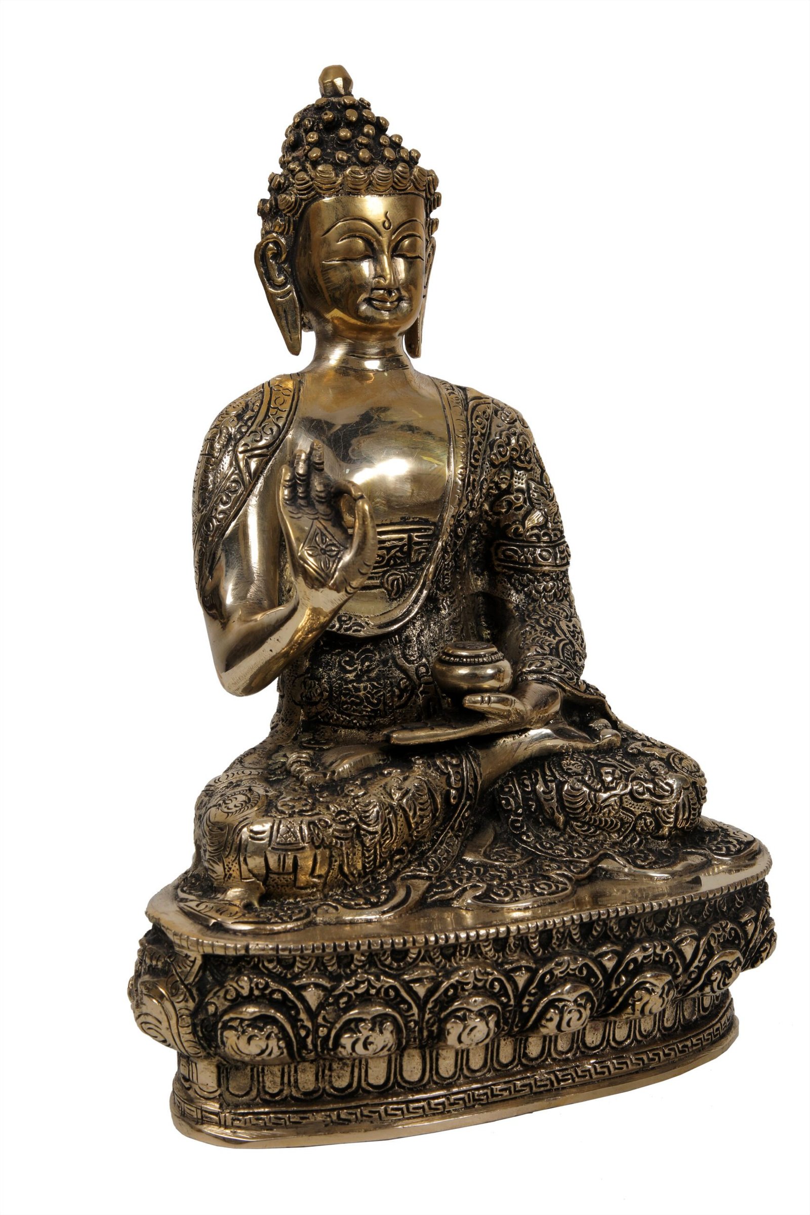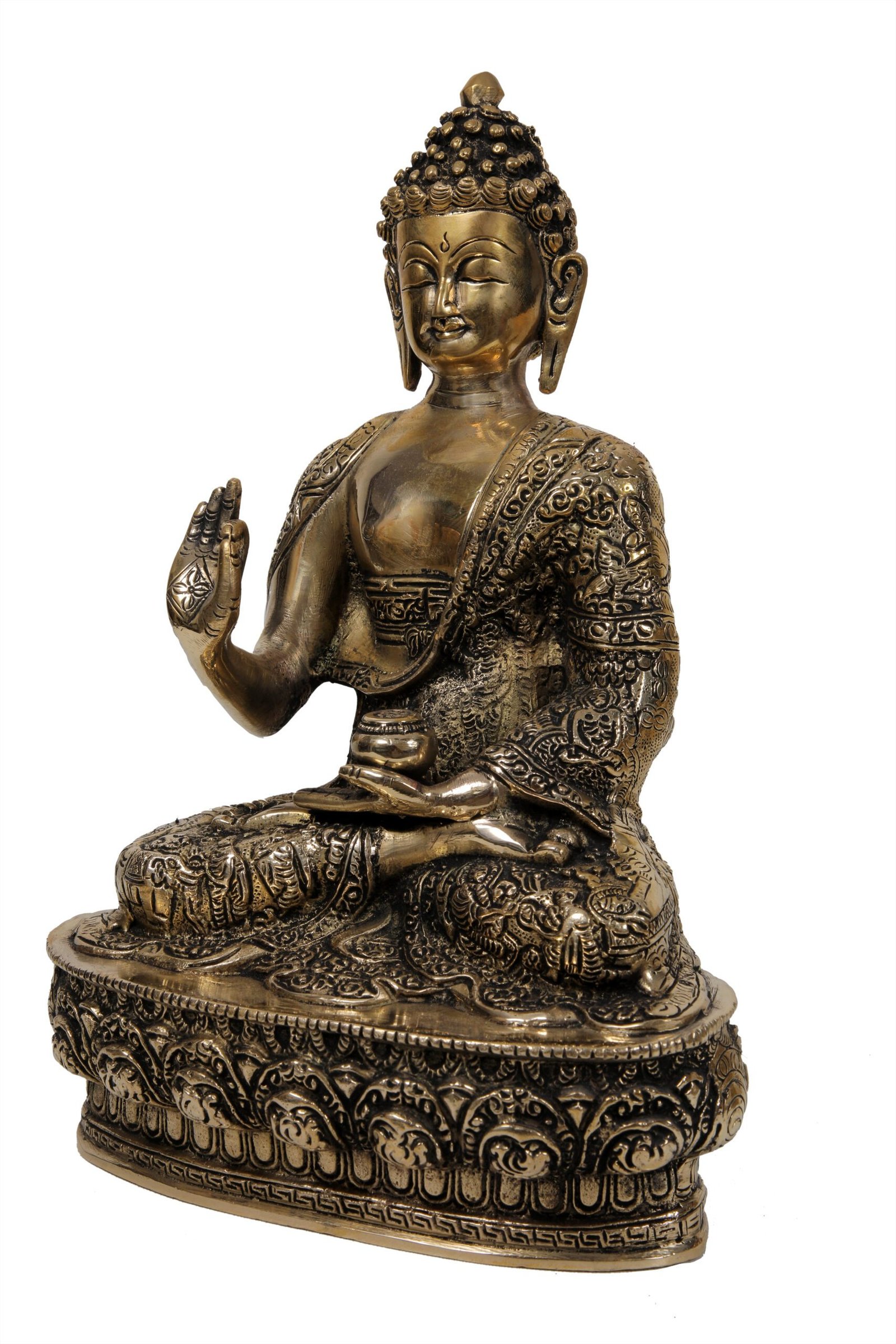 - Handcrafted Excellence: Meticulously handcrafted by skilled artisans, this brass Buddha statue showcases intricate detailing and a timeless design. Its narrative-driven craftsmanship adds an artistic touch to any room.