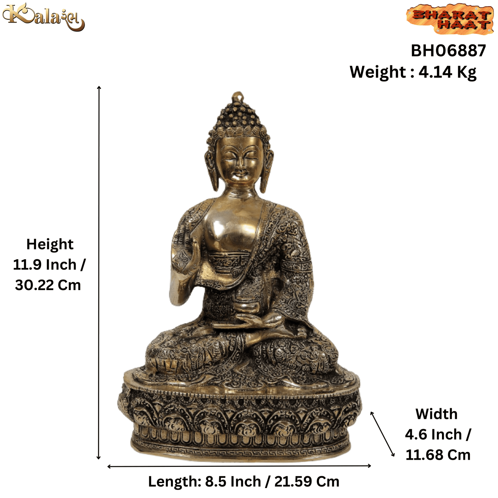 - Dimensions & Weight: Measuring 8.5 x 4.6 x 11.9 inches (21.59 x 11.68 x 30.22 cm) and weighing 4.14 kg, this brass Buddha sculpture is a substantial yet elegant addition to your home or office décor.