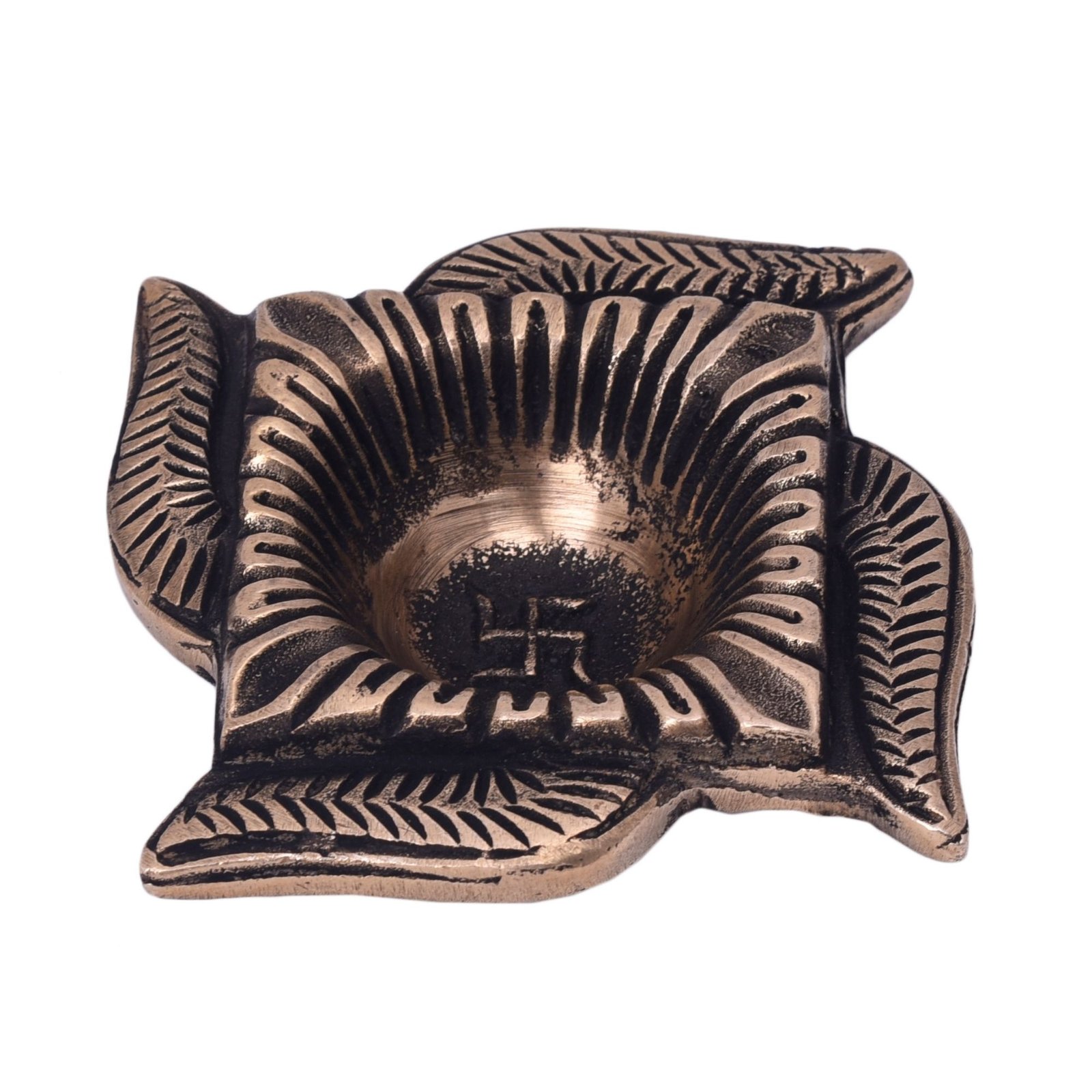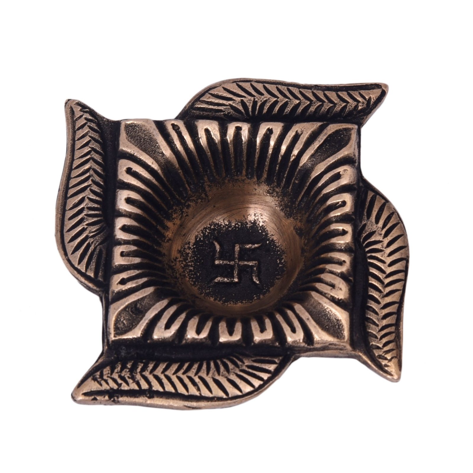 Swastika Divi Carved Oil Lamp Brass For Collectible Handicraft Art By BHARATHAAT