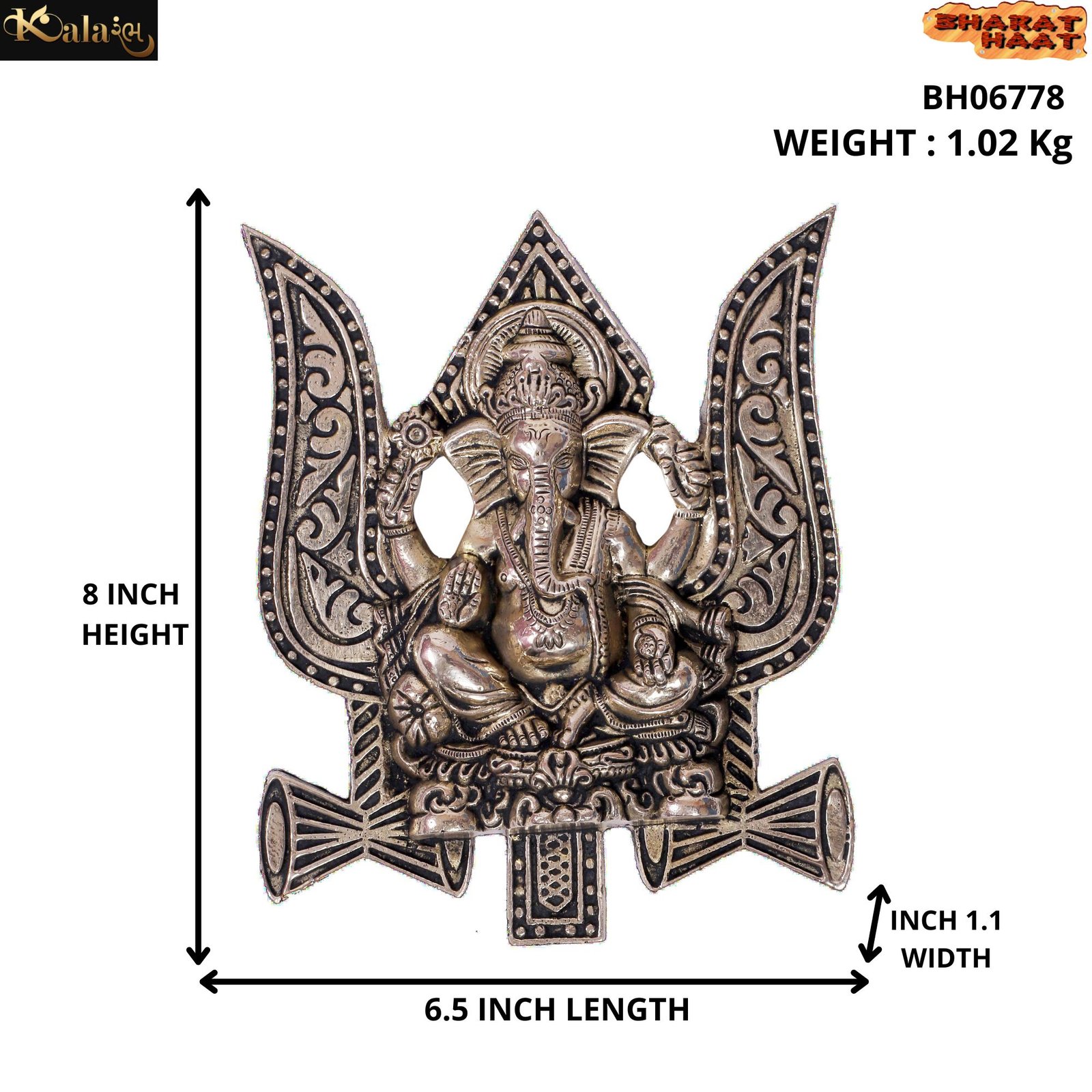 Trishul Ganesha Brass For Collectible Handicraft Art By BHARATHAAT