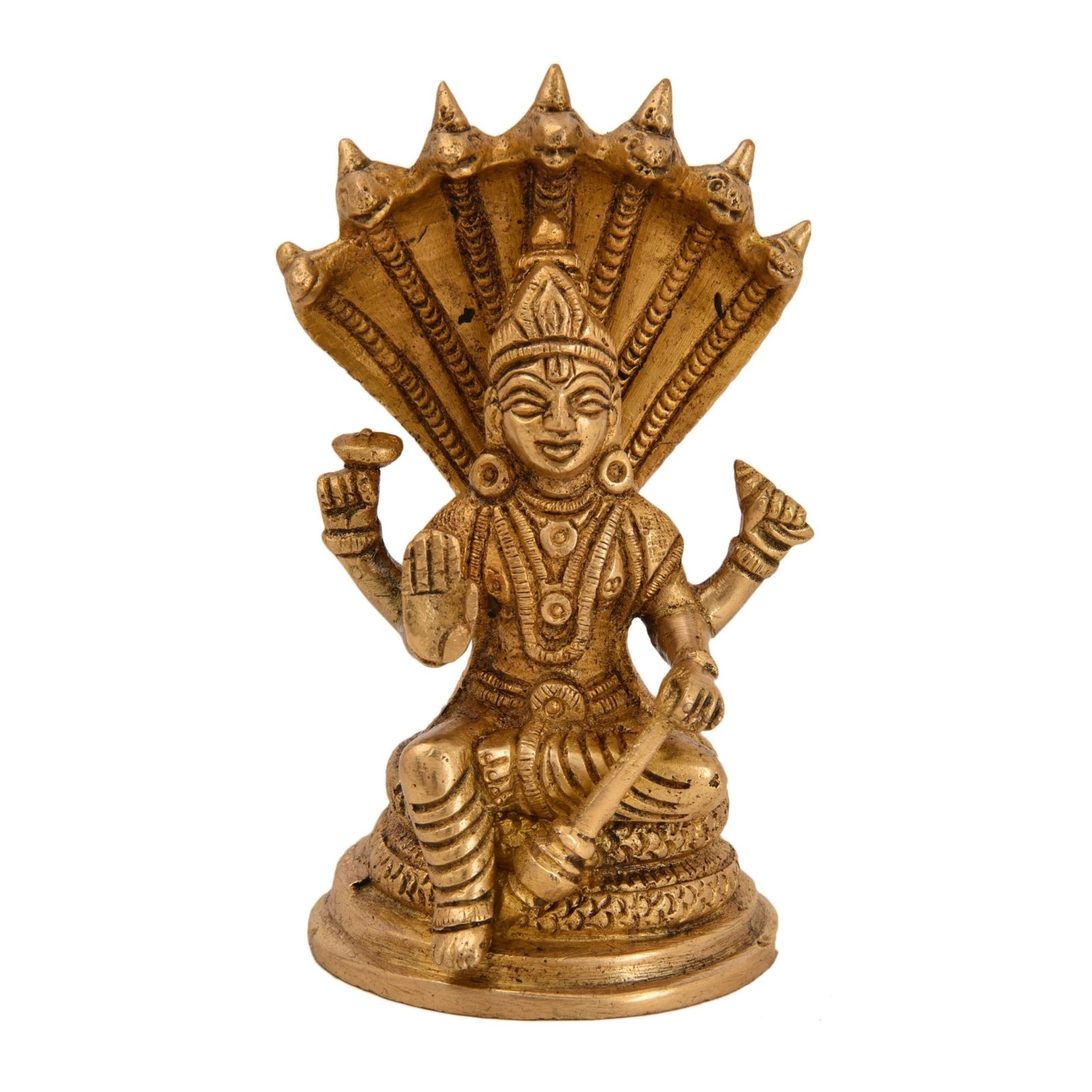 - Brass Vishnu God with Beautifull Carving Work Idol Pooja Best for Gift Showpiece HANDICRAFT ART BY BHARAT HAAT
