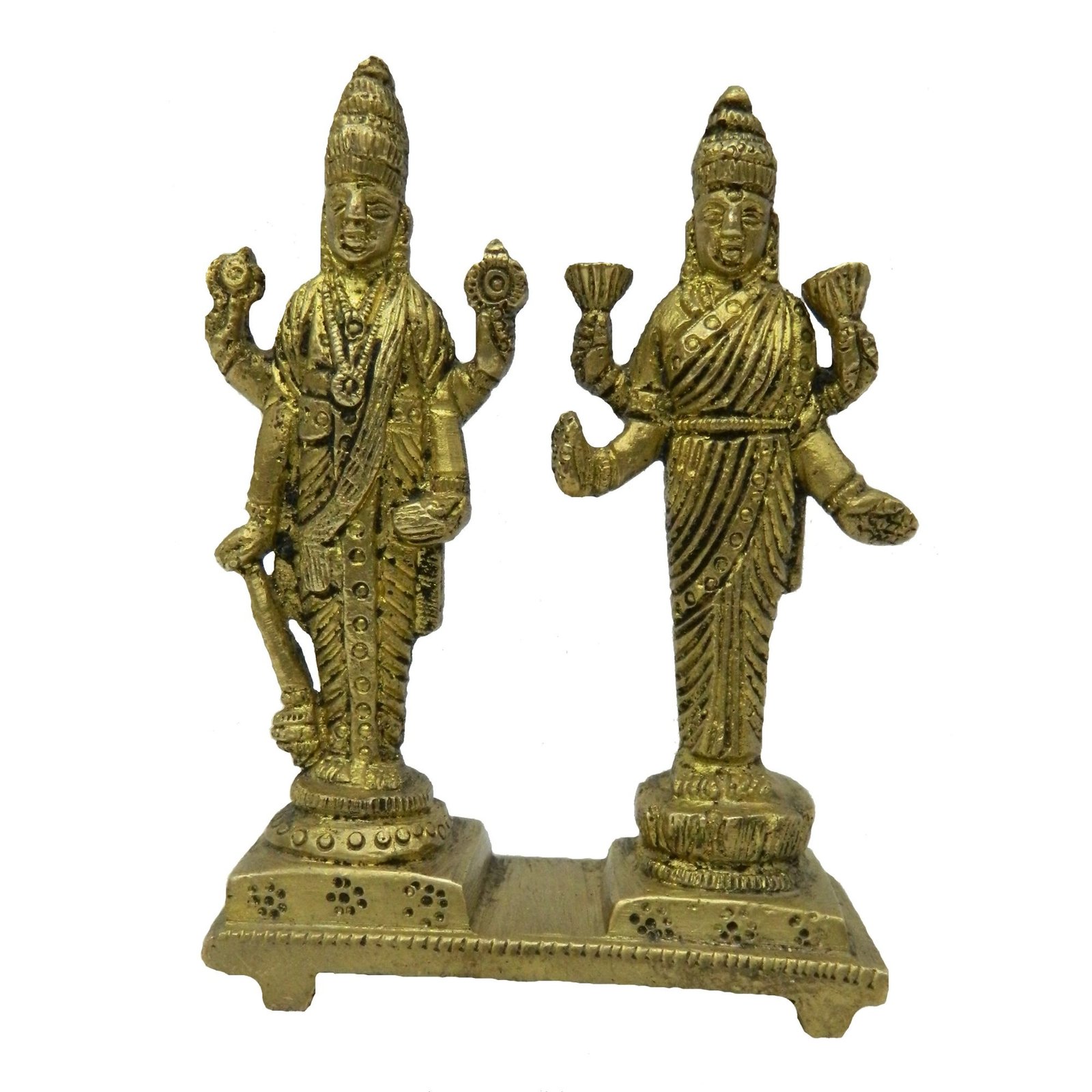 - Brass Kaman Vishnu Lakshmi VishnuLaxmi Pair with Beautifull Carving Work Idol Pooja Best for Gift Showpiece HANDICRAFT ART BY BHARAT HAAT
