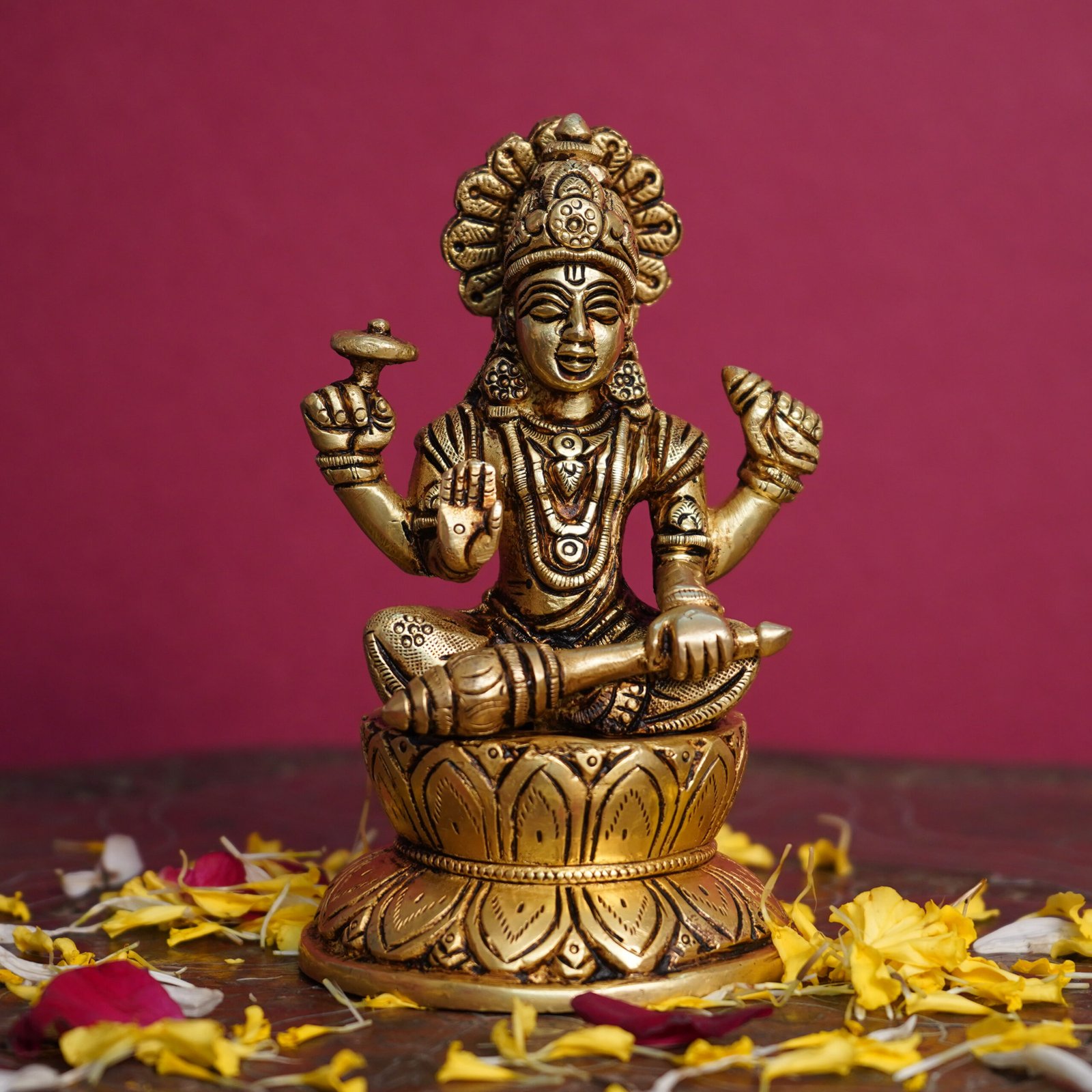 Vishnu Sitting On Kamal Base Brass For Collectible Handicraft Art By BHARATHAAT