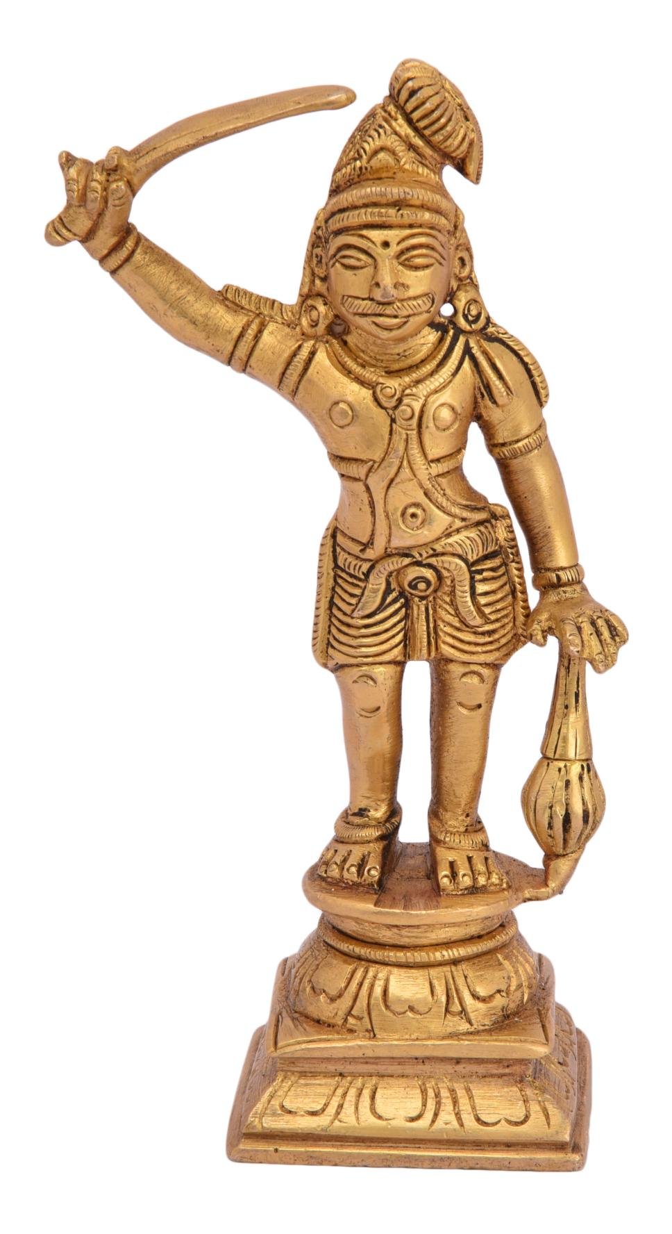 Warrior Deity Brass Madhuri Viran Statue 5.7 Inch Height