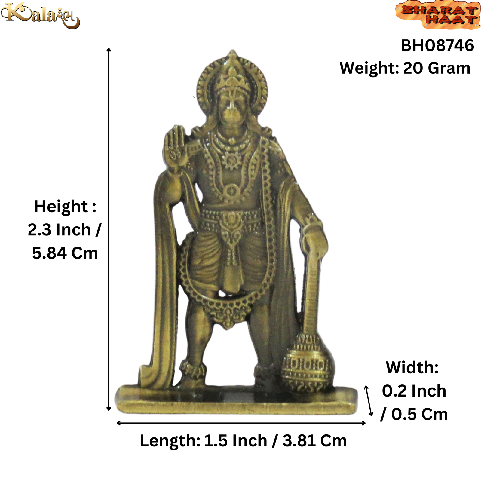 White Metal Hanuman Idol for Décor Home and Car Dashboard 2.3″ Inch